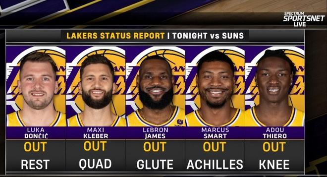 不过,相较于22分的惨负赛果,湖人真正让人担忧的是轮换球员的实力问题。比赛开始前,官方晒出了湖人本场高挂免战牌的五人组名单:东契奇、克勒贝尔、詹姆斯、斯玛特和阿杜,毫不夸张地说,这都可以凑出一套完整的首发阵容了。这对于能够上场的湖人球员而言,既是机会也是挑战,如果能抓住机会,展示自己的实力和战术素养,很可能就此争取到一个轮换席位。